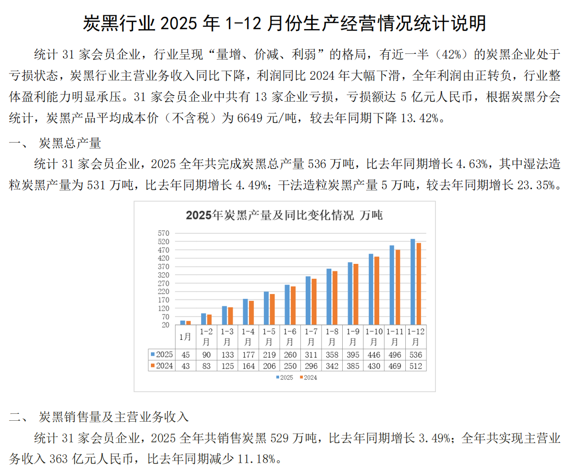 2025年1-12月炭黑重点企业统计数据